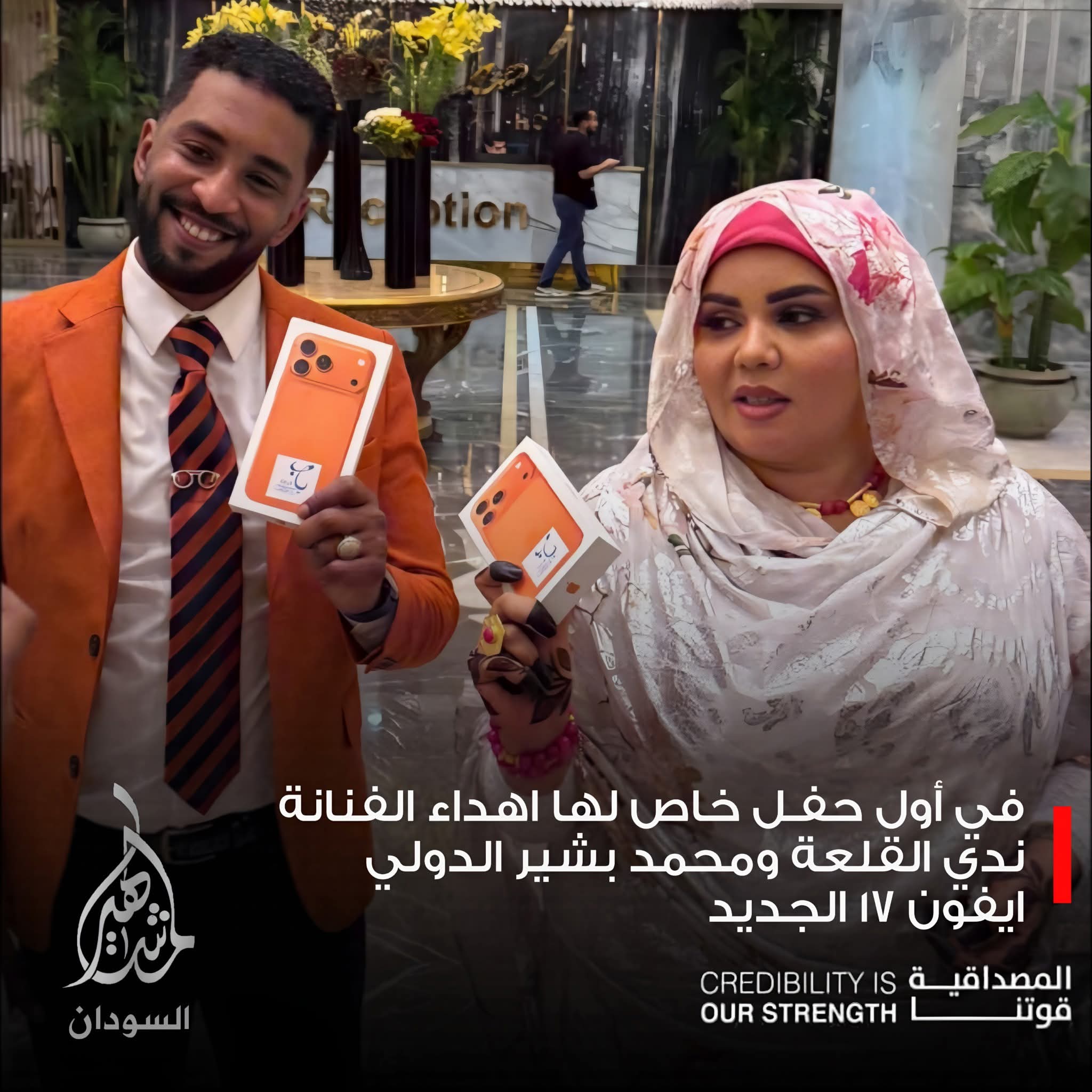 متابعات -السودان الآن – في مشهد طغت عليه المفاجأة والفرح، شهد أول حفل خاص للفنانة ندى القلعة بالعاصمة المصرية القاهرة لحظة مميزة عندما قدّمت أم العروس هدية فاخرة لكلٍ من ندى القلعة والفنان الدولي، تمثّلت في أحدث إصدارات شركة أبل “آيفون 17”