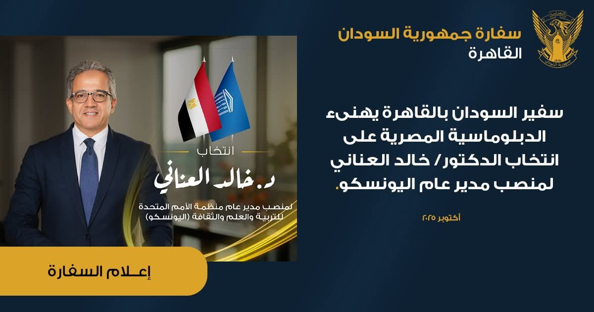 سفير السودان بالقاهرة يهنئ الدبلوماسية المصرية بانتخاب الدكتور خالد العناني مديرًا عامًا لليونسكو