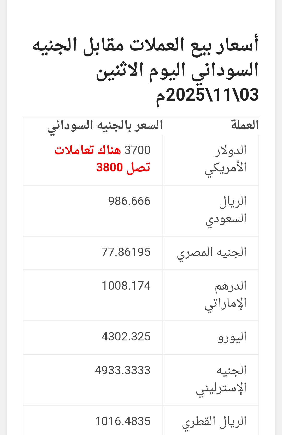 مؤشر أسعار العملات مقابل الجنيه السوداني اليوم الاثنين 3 نوفمبر 2025