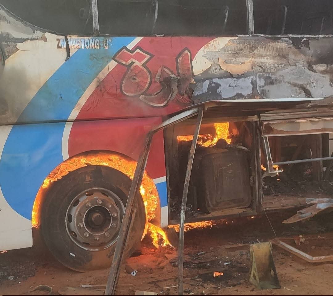 متابعات – السودان الآن – اندلع حريق مفاجئ في بص سياحي متوقف يتبع لسفريات أبوالسارة يعمل على خط (أم روابة – بورتسودان)، وذلك في تمام الساعة 8 صباح الخميس 8 يناير 2025 داخل حي الفاروق بمدينة أم روابة، نتيجة التماس كهربائي داخل الطبلون أثناء تشغيل البص في ظل غياب الطاقم لتناول شاي الصباح.