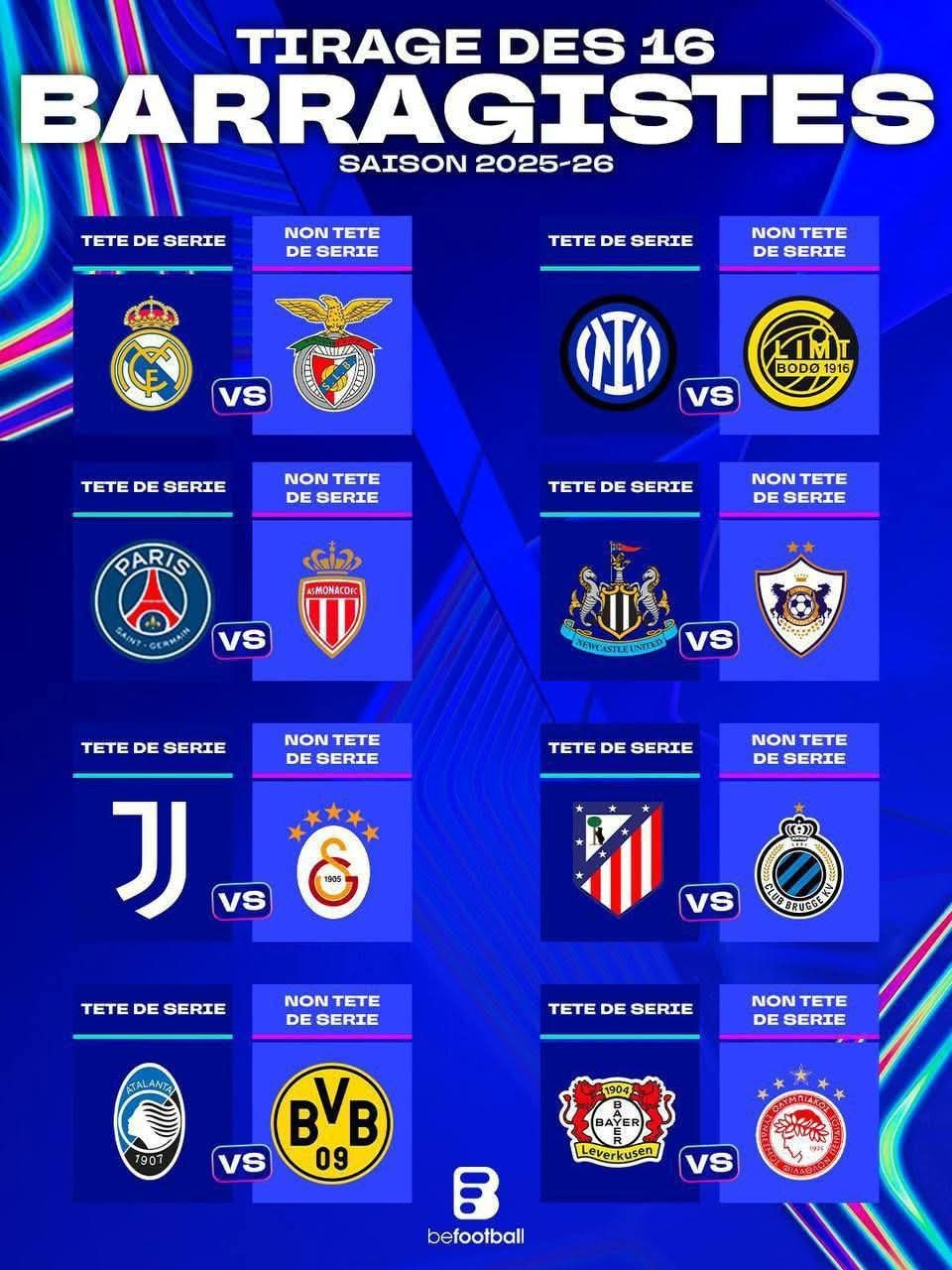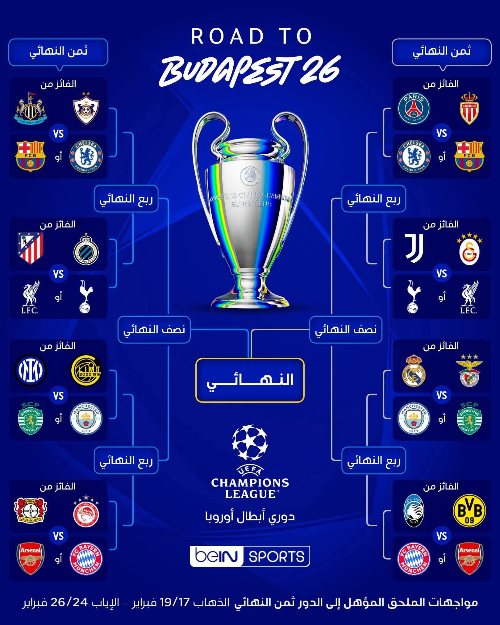 رسمياً، أسدل الستار عن مواجهات نارية في ملحق دوري أبطال أوروبا المؤهل إلى دور الـ16، مواجهات من العيار الثقيل، لا تعترف بالأسماء ولا تقبل أنصاف الحلول… إما العبور أو الوداع المبكر
