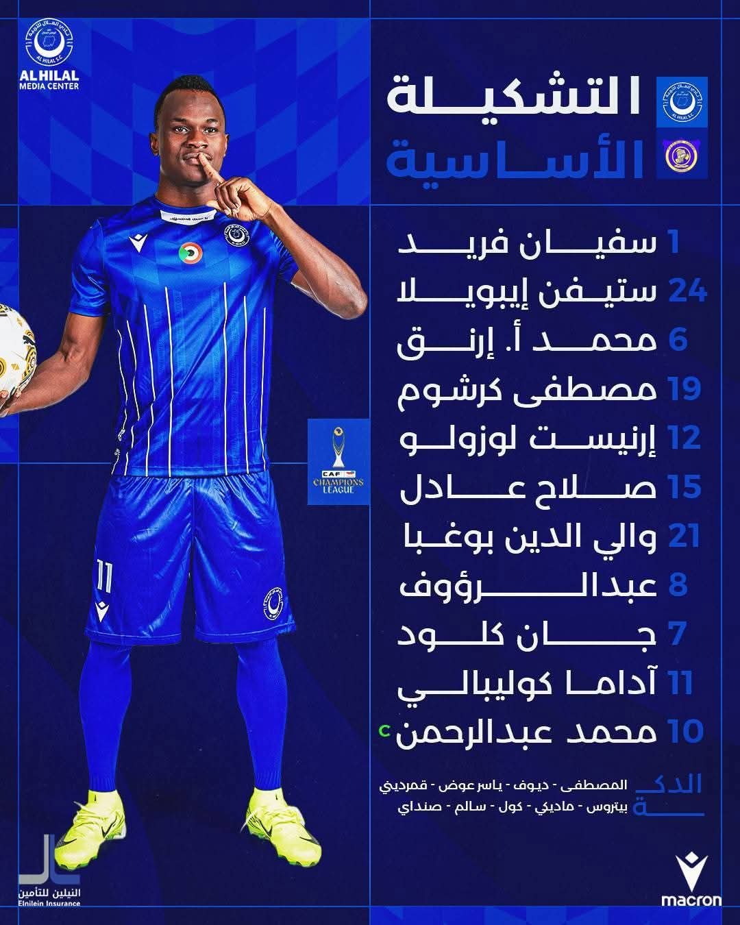 متابعات – السودان الآن – أعلن نادي الهلال عن تشكيلته الأساسية لمواجهة فريق سانت لوبوبو اليوم، وجاءت كالتالي: