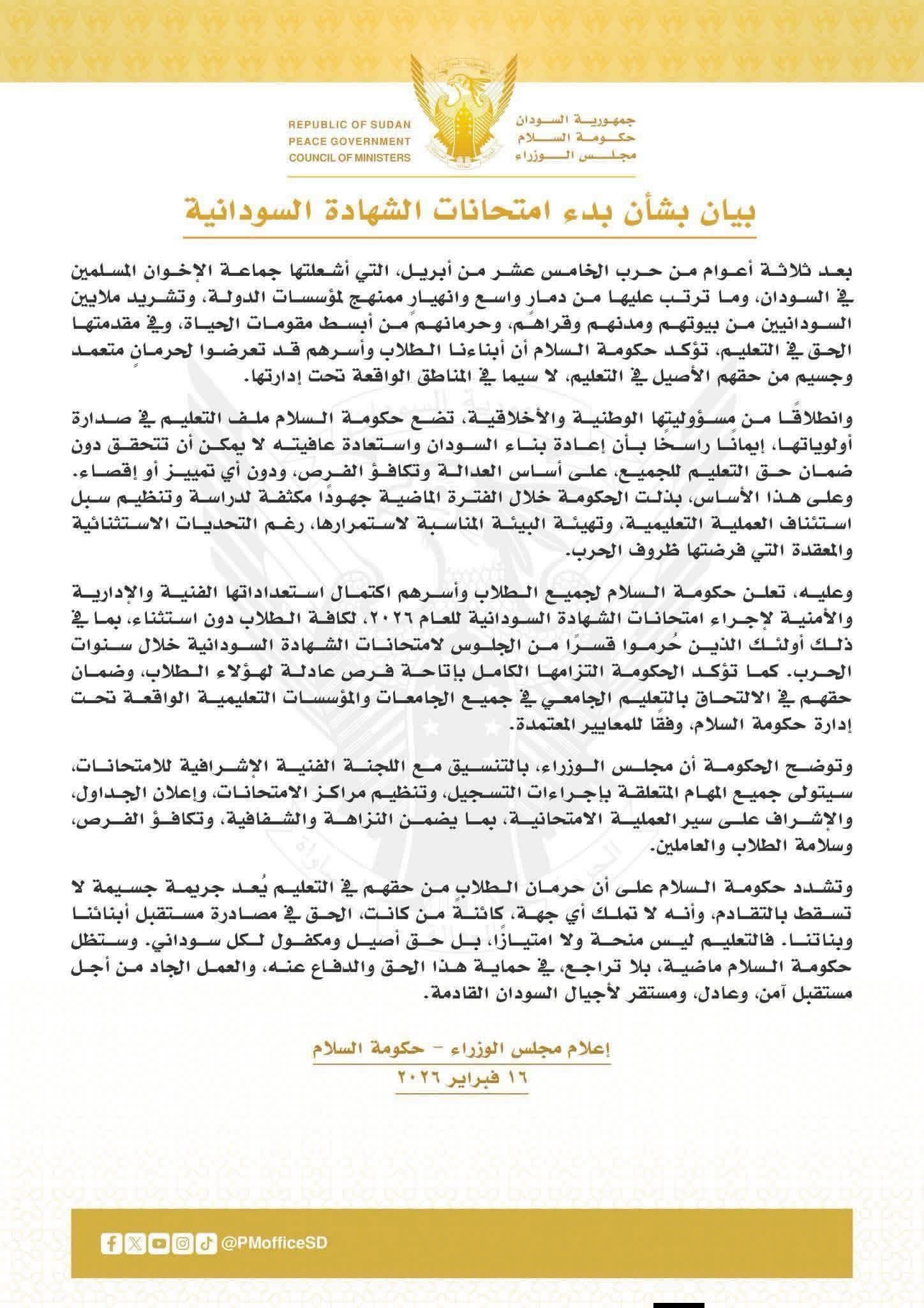 إعلان إقامة امتحانات الشهادة السودانية في مناطق الدعم السـ.ريع