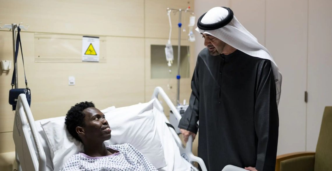 متابعات – السودان الآن – زار رئيس دولة الإمارات أحد المصابين السودانيين الذين يتلقون العلاج في أحد المستشفيات الحكومية بالدولة، وذلك بعد إصابته جراء الهجوم الذي استهدف أراضي الإمارات مؤخراً.