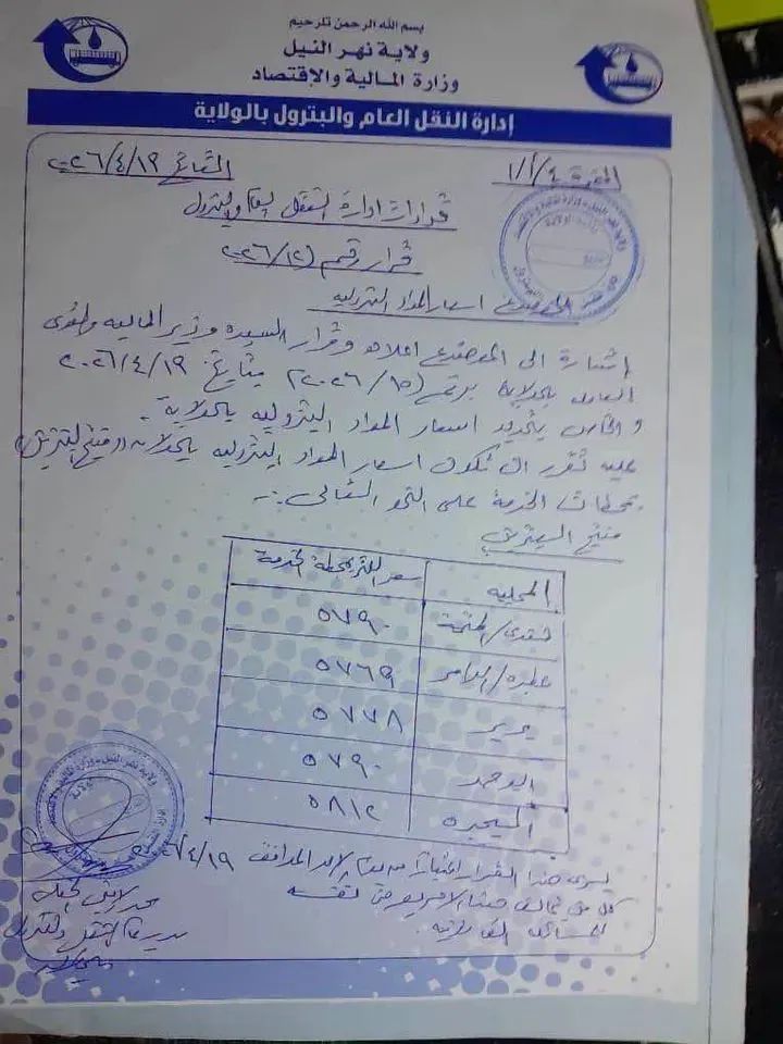 زيادة جديدة في أسعار الوقود بولاية نهر النيل